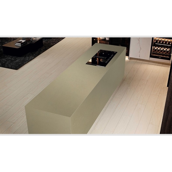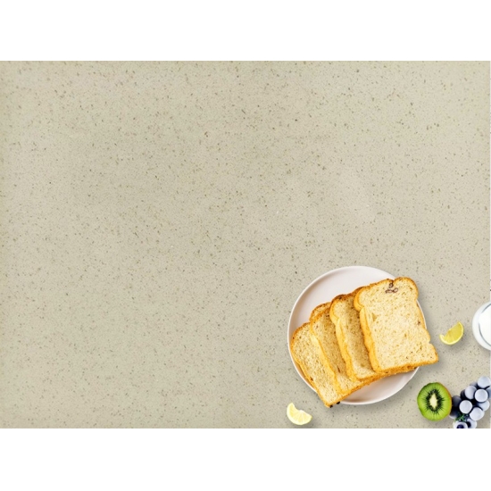 闪耀米色石英石是一种经过特殊处理的人造石英石,与其他系列的不同之处在于它拥有更加闪亮的外观。这种石英石铺设在墙面、地面、台面等处,能够营造出丰富的层次感和质感。它可用于打造浴室和厨房中令人惊艳的墙面装饰和洗手盆挡水板。由于其抗菌防潮的特性,这种石英石尤其适用于经常接触潮湿环境的区域。