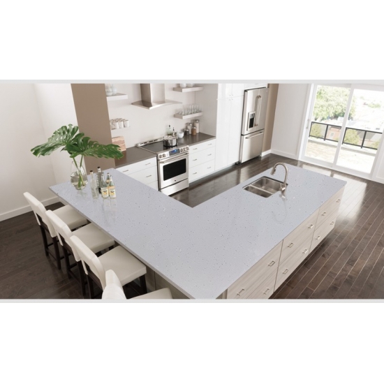 隆重推出我们时尚现代的灰色亚克力石英石台面,是您厨房或浴室的完美之选。我们的台面采用优质石英石制成,不仅经久耐用,而且耐刮擦、耐污渍、耐热。惊艳的灰色亚克力饰面为任何空间增添了一抹现代优雅气息,而其无孔表面则确保了轻松清洁和卫生。