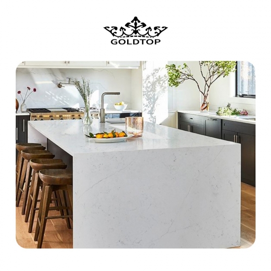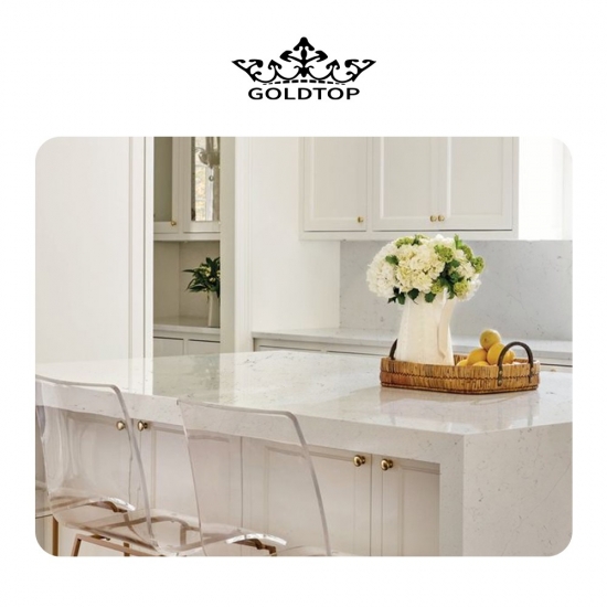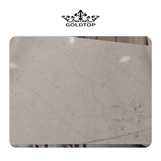 4002 海洋卡拉拉大理石石英石板 这款石英石板材外观精致优雅,柔和的白色背景上点缀着灵感源自天然卡拉拉大理石的细腻灰色纹理。流畅的纹理在表面营造出平静如海的动感,增添了层次感,同时又保持了简洁永恒的美感。这款石英石板材散发着低调奢华的气息,兼具经典之美与现代耐用性,是厨房、浴室以及其他追求明亮优雅外观的精致室内空间的理想之选。