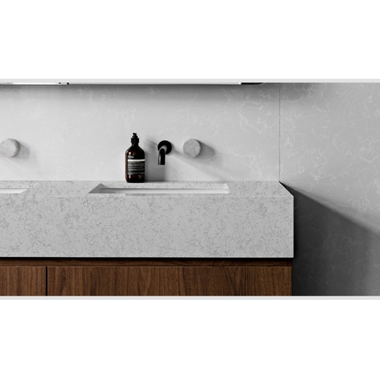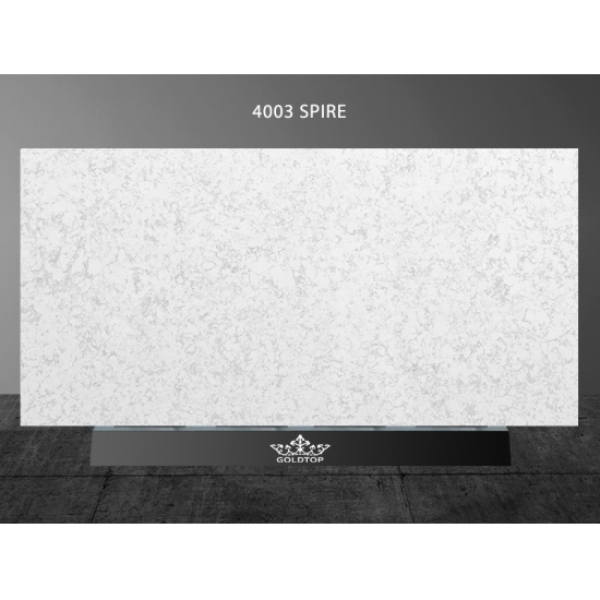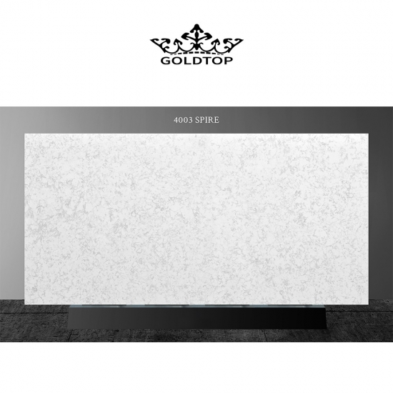 4003 尖顶大理石石英石板 这款石英石板材呈现出优雅精致的外观,灵感源自天然大理石。柔和的浅色调底色上点缀着流畅优美的纹理,增添了层次感和视觉趣味,却又不显得过于繁复。底色与细腻纹理之间的平衡对比,营造出简洁而又不失格调的视觉效果。这款石英石板材适用于住宅和商业空间,为任何空间带来永恒的优雅和低调的奢华感。