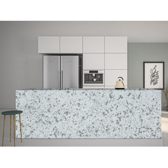 4007 莲花大理石石英石板 这款石英石台面展现出优雅精致的外观,其灵感源自天然大理石。柔和的浅色调底色上点缀着流畅的纹理,营造出和谐平衡之感。表面散发着沉稳隽永的优雅气质,精致的图案增添了空间的层次感,却又不显得过于繁复。这款石英石旨在带来明亮通透的氛围,是现代和古典室内设计的理想之选,无论应用于何处,都能增添低调奢华的气息和经久不衰的魅力。