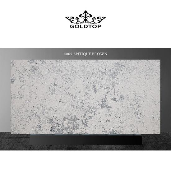 4009 古董棕色大理石石英石板 这款石英石板材以其温暖的棕色底色和柔和流畅的大理石纹理,呈现出丰富而永恒的美感。表面质感细腻,兼具深度与优雅,自然的色调和微妙的纹理营造出温暖而低调的奢华感。这款石英石板材的设计旨在与古典和现代室内设计风格完美融合,为任何空间增添个性与精致,同时保持宁静和谐的视觉效果。