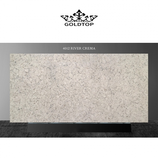 4012 河畔奶油色大理石石英石板 这款石英石板材展现出温暖优雅的外观,柔和的奶油色底色上点缀着灵感源自天然大理石的流畅纹理。精致的纹理赋予表面一种优雅隽永的魅力,微妙的动感和层次感恰到好处,不会喧宾夺主。这款石英石板材旨在为空间增添温暖与精致,是追求平衡奢华美感的住宅和商业空间的理想之选。