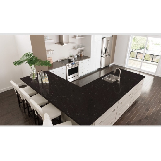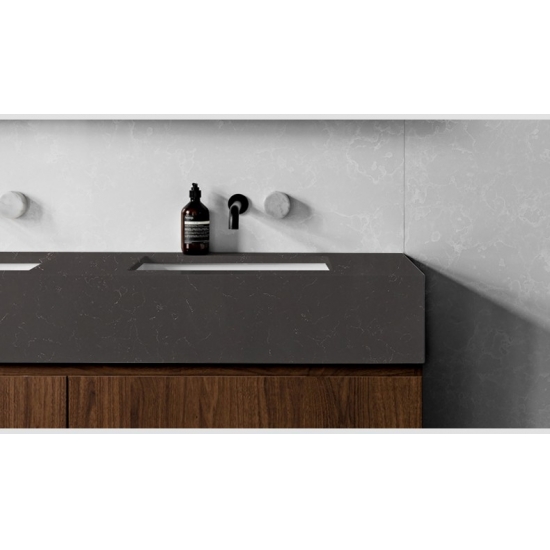 4017 Bianco Marquina 大理石石英 这款石英石板材外观引人注目,优雅别致,洁白的底色上点缀着醒目而富有张力的黑色纹理。深色纹理与白色底色形成鲜明对比,营造出丰富的层次感和自然的动感,令表面散发出精致奢华的气息。这款石英石板材旨在彰显高雅品味,为任何空间增添永恒的优雅与奢华感。