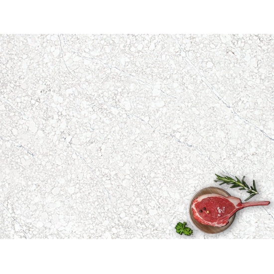 4018 卡拉拉瓦格利大理石石英 这款石英石板材呈现出永恒优雅的外观,柔和的白色底色上点缀着精致的灰色纹理,自然流畅地贯穿整个表面。纹理与光滑底面的微妙对比,散发出精致优雅的气息,营造出和谐动感的视觉效果。这款石英石板材旨在以其经典奢华的美感提升任何空间,为台面、盥洗台或特色墙面增添一抹低调的奢华感。