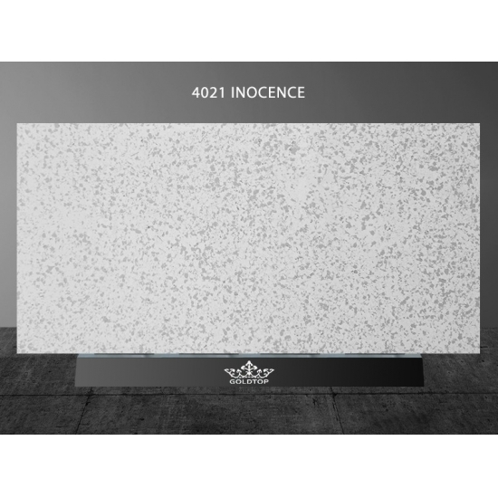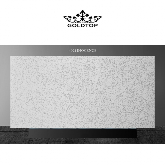 4021 纯真大理石石英 这款石英石板材以其柔和的白色背景和细腻的灰色纹理,呈现出宁静优雅的气质。光影在表面交错,营造出一种沉稳精致的氛围,凸显了仿大理石设计的自然之美。这款石英石板材为任何空间带来永恒的优雅,是厨房、浴室和特色墙面等追求精致优雅氛围的理想之选。