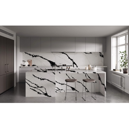 这款石英石用途广泛,从台面、厨房岛台到特色墙和盥洗台,都能完美胜任。其鲜明的纹理赋予空间独特的个性和精致感,使其成为任何设计的焦点。无论搭配光滑的金属色调还是温暖的木质色调,5125 Calacatta Fiorina 石英石都能提升任何空间的优雅气质。