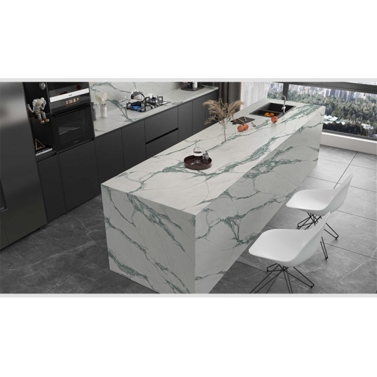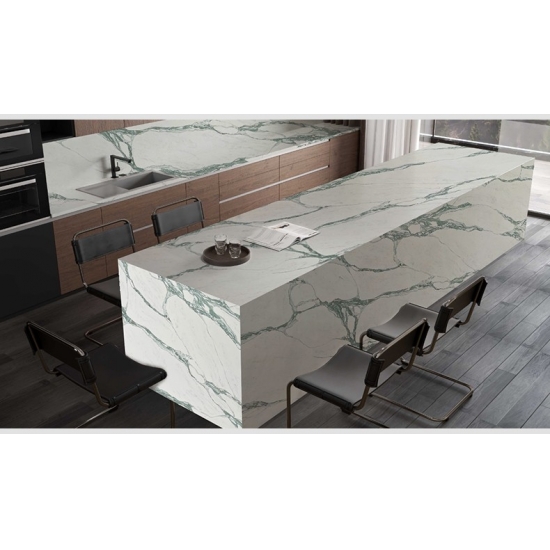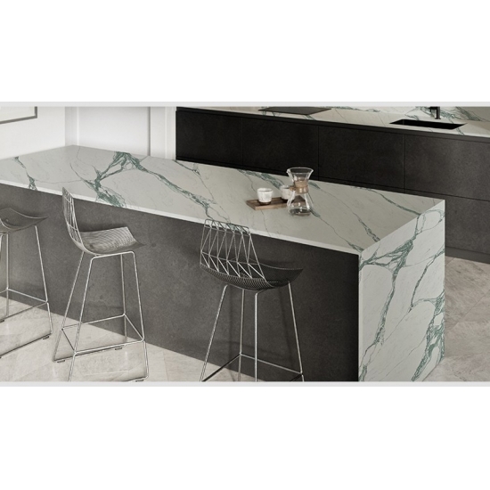 卡拉卡塔灰石英石(Calacatta Grigio)是目前最受欢迎的石英石产品。卡拉卡塔系列石英石拥有卡拉卡塔大理石的天然外观,却没有任何大理石台面的缺点。卡拉卡塔石英石非常耐用,防污防刮,因此也是厨房和浴室台面、楼梯、窗台、定制家具、室内外墙面和地面、水刀切割图案以及其他设计项目的理想之选。