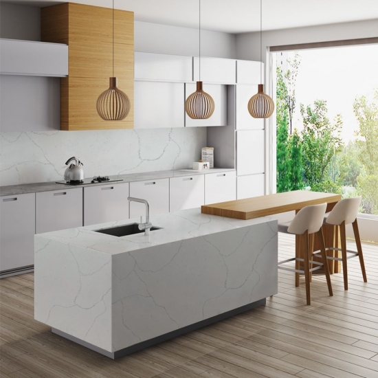 5128 Fior Bosco 白色石英石板材,适用于厨房台面
