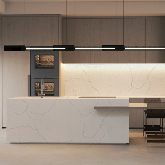 卡拉卡塔石英石由天然成分制成,坚固耐用且孔隙率低,因此石英石制品几乎不会磨损。耐用性、舒适性和纹理一致性是石英石日益流行的主要原因。石英石90%为天然石材,其余为粘合剂、染料和添加剂,用于改善石材的技术性能。其良好的透水性和抗污性更增添了石英石的美感。