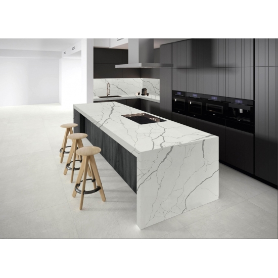 5128 Fior Bosco 白色石英石板材,适用于厨房台面