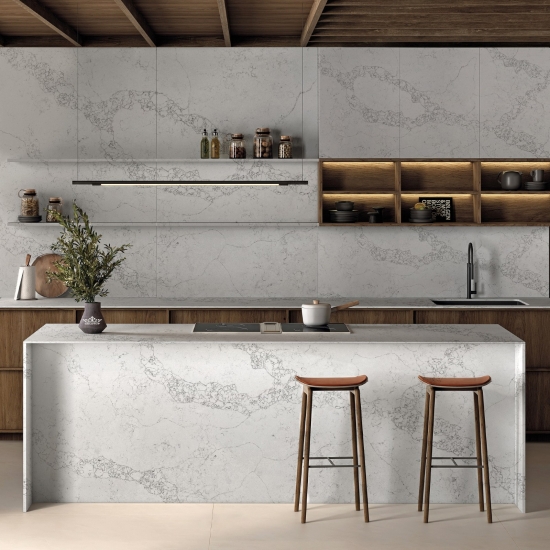 5128 Fior Bosco 白色石英石板材,适用于厨房台面