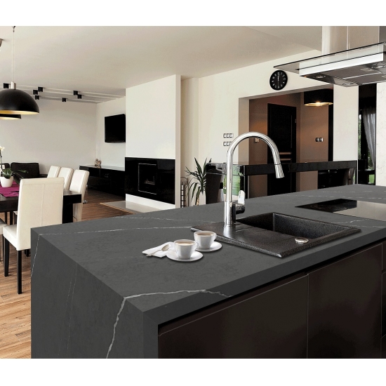 卡拉卡塔石英石由天然成分制成,坚固耐用且孔隙率低,因此石英石制品几乎不会磨损。耐用性、舒适性和纹理一致性是石英石日益流行的主要原因。石英石90%为天然石材,其余为粘合剂、染料和添加剂,用于改善石材的技术性能。其良好的透水性和抗污性更增添了石英石的美感。
