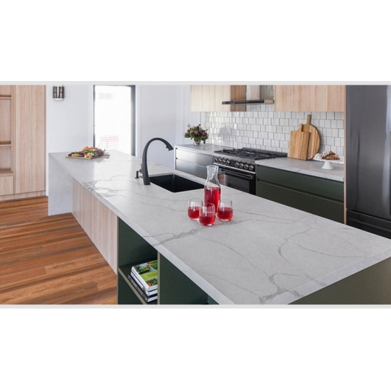 卡拉卡塔石英石由天然成分制成,坚固耐用且孔隙率低,因此石英石制品几乎不会磨损。耐用性、舒适性和纹理一致性是石英石日益流行的主要原因。石英石90%为天然石材,其余为粘合剂、染料和添加剂,用于改善石材的技术性能。其良好的透水性和抗污性更增添了石英石的美感。