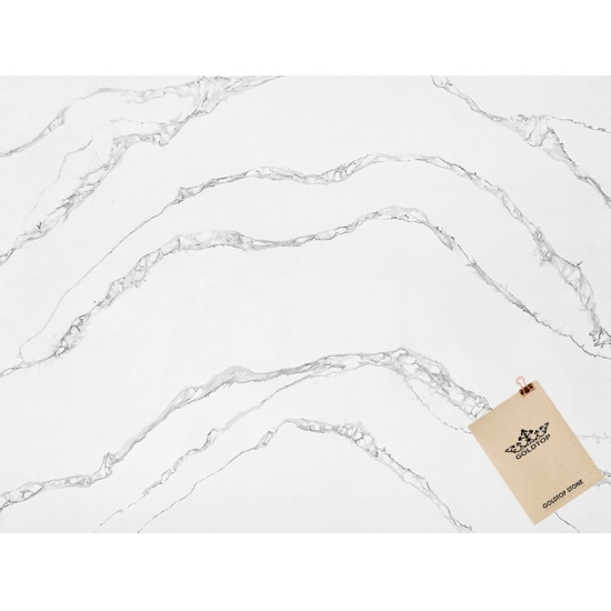 金顶 5045 河谷白卡拉卡塔石英石,带灰色纹理
