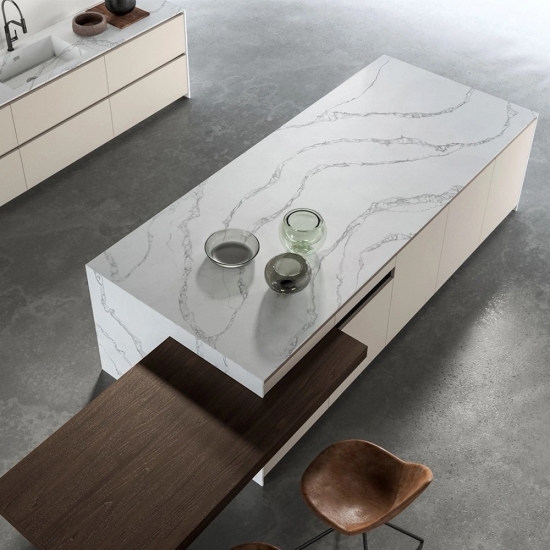 5128 Fior Bosco 白色石英石板材,适用于厨房台面