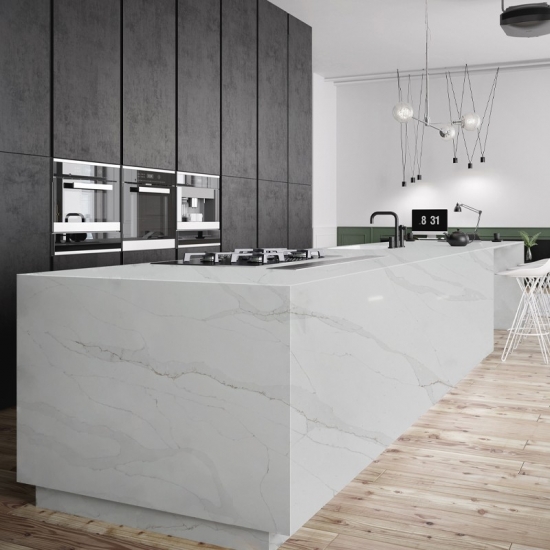 卡拉卡塔石英石由天然成分制成,坚固耐用且孔隙率低,因此石英石制品几乎不会磨损。耐用性、舒适性和纹理一致性是石英石日益流行的主要原因。石英石90%为天然石材,其余为粘合剂、染料和添加剂,用于改善石材的技术性能。其良好的透水性和抗污性更增添了石英石的美感。