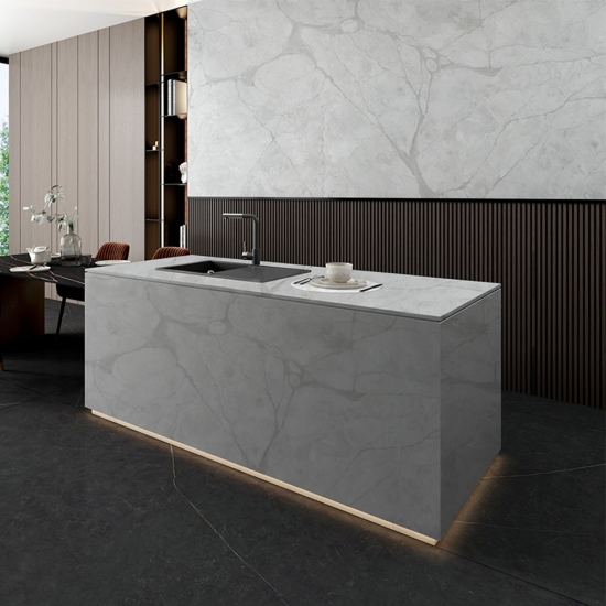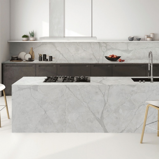卡拉卡塔系列石英石是目前最受欢迎的石英石产品。精致独特的卡拉卡塔石英石以其纯净的白色和引人注目的通体大理石纹理令人惊艳。它拥有美丽醒目的宽纹理图案和奢华的质感。这款石英石拥有卡拉卡塔大理石的天然外观,却没有任何大理石台面的缺点。卡拉卡塔石英石非常耐用,防污防刮,因此也是厨房和浴室台面、楼梯、窗台、定制家具、室内外墙面和地面、水刀切割图案以及其他设计项目的理想之选。