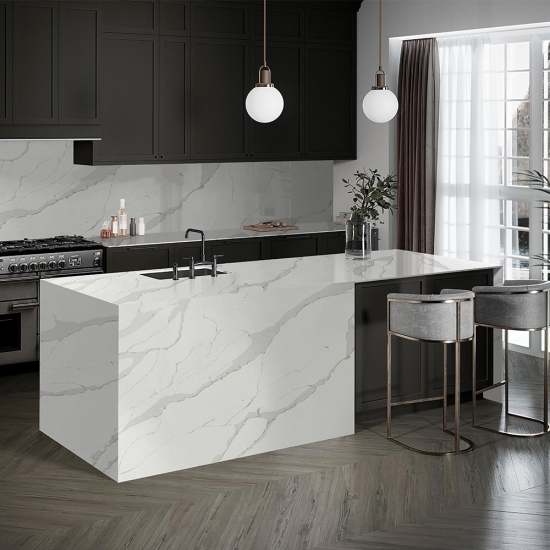 卡拉卡塔石英石由天然成分制成,坚固耐用且孔隙率低,因此石英石制品几乎不会磨损。耐用性、舒适性和纹理一致性是石英石日益流行的主要原因。石英石90%为天然石材,其余为粘合剂、染料和添加剂,用于改善石材的技术性能。其良好的透水性和抗污性更增添了石英石的美感。