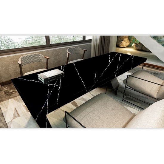 5074 黑色艺术石英石台面以醒目的黑色为底,饰以引人注目的白色纹理,对比鲜明,营造出动感十足的艺术视觉效果。这款石英石台面尽显现代奢华,是任何现代室内设计的点睛之笔。