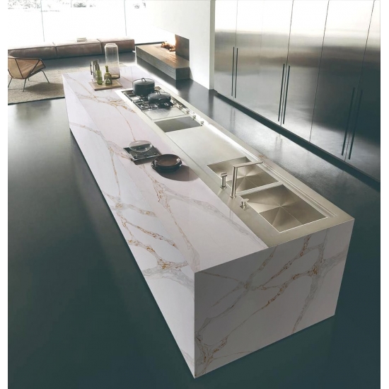 卡拉卡塔系列石英石是目前最受欢迎的石英石产品。精致独特的卡拉卡塔石英石以其纯净的白色和引人注目的通体大理石纹理令人惊艳。它拥有美丽醒目的宽纹理图案和奢华的质感。这款石英石拥有卡拉卡塔大理石的天然外观,却没有任何大理石台面的缺点。卡拉卡塔石英石非常耐用,防污防刮,因此也是厨房和浴室台面、楼梯、窗台、定制家具、室内外墙面和地面、水刀切割图案以及其他设计项目的理想之选。