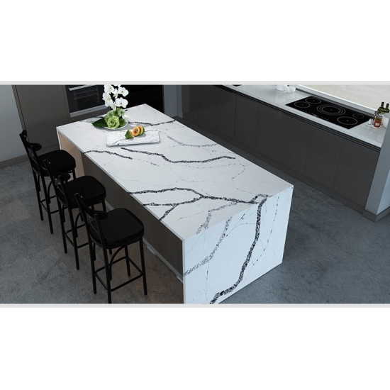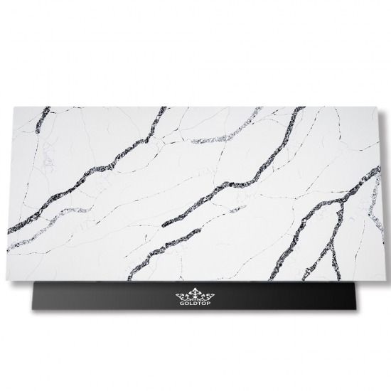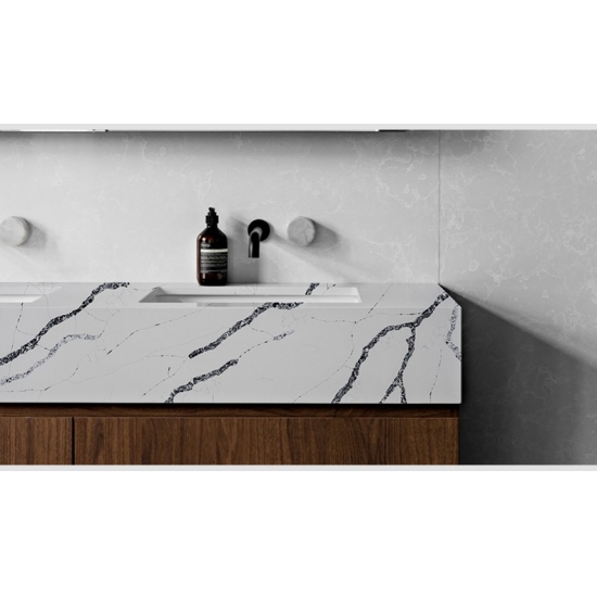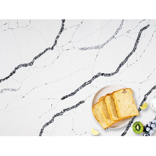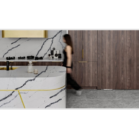 5083 卡拉卡塔维拉石英石拥有亮白的底色,并饰以醒目大胆的灰色纹理。鲜明的对比营造出强烈的层次感和动感。这款石英石板材尽显奢华优雅,是打造现代室内精致格调的理想之选。