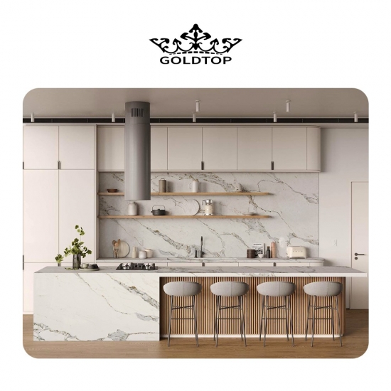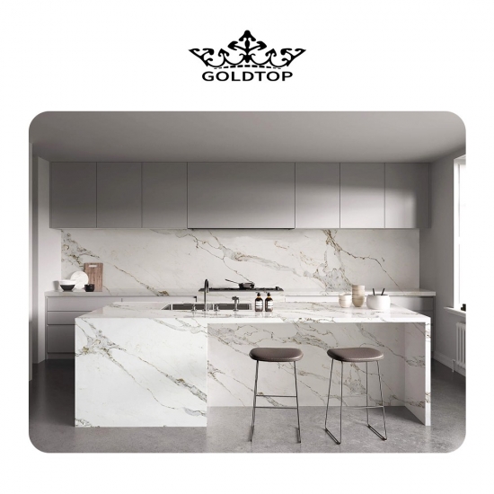 卡拉卡塔石英石(Brittanicca Gold),卡拉卡塔系列石英石是目前最受欢迎的石英石产品。精致独特,卡拉卡塔石英石以其纯净的白色和引人注目的通体大理石纹理令人惊艳。