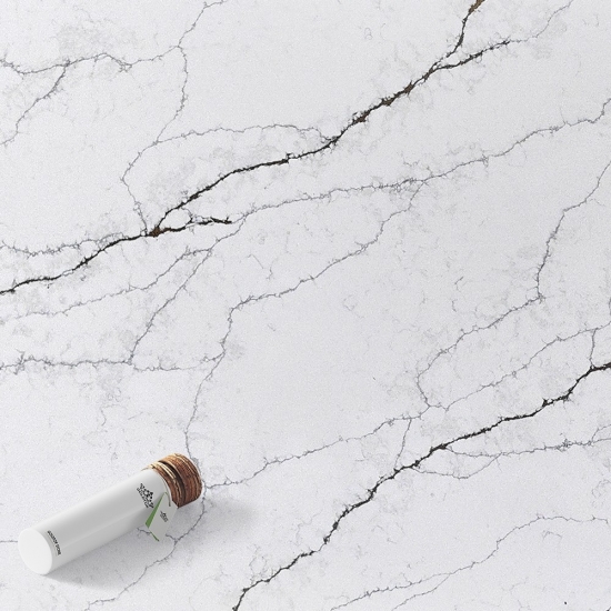 4051有机白凯撒石英石零硅配方,拥有纯白表面和环保的零硅成分,确保无毒安全。其优点包括高耐用性、易于维护和现代简约美学,是健康家居厨房和浴室台面的理想之选。