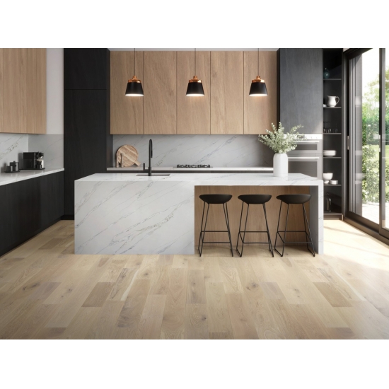 4052 Ariston Grey 拥有简约而优雅的灰色调,呈现出低调而现代的美感。这款石英石具有极强的耐刮擦、耐污渍和耐热性,是厨房台面和浴室台面等高频使用区域的理想之选。由于其致密的结构,Ariston Grey 石英石具有极佳的防水性和易清洁性,能够持久保持美观。