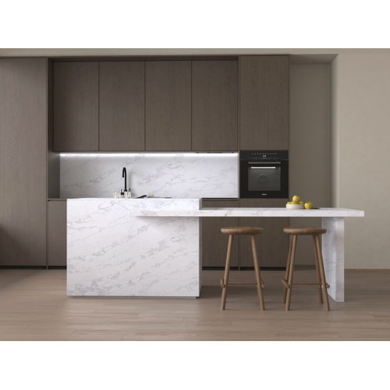 4052 Ariston Grey 拥有简约而优雅的灰色调,呈现出低调而现代的美感。这款石英石具有极强的耐刮擦、耐污渍和耐热性,是厨房台面和浴室台面等高频使用区域的理想之选。由于其致密的结构,Ariston Grey 石英石具有极佳的防水性和易清洁性,能够持久保持美观。