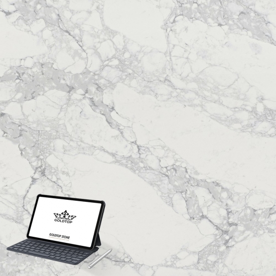 4051有机白凯撒石英石零硅配方,拥有纯白表面和环保的零硅成分,确保无毒安全。其优点包括高耐用性、易于维护和现代简约美学,是健康家居厨房和浴室台面的理想之选。