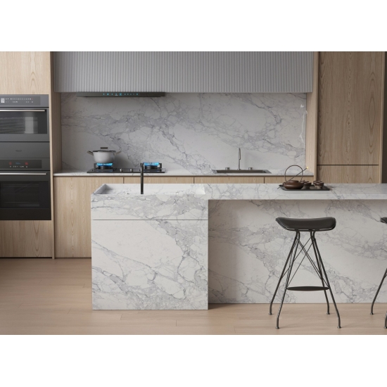 4052 Ariston Grey 拥有简约而优雅的灰色调,呈现出低调而现代的美感。这款石英石具有极强的耐刮擦、耐污渍和耐热性,是厨房台面和浴室台面等高频使用区域的理想之选。由于其致密的结构,Ariston Grey 石英石具有极佳的防水性和易清洁性,能够持久保持美观。