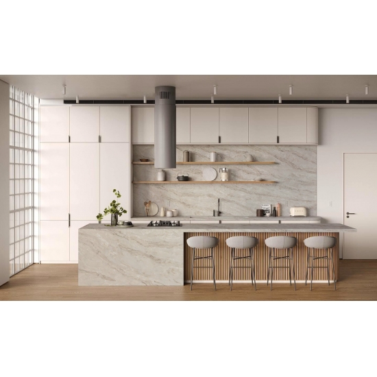 4052 Ariston Grey 拥有简约而优雅的灰色调,呈现出低调而现代的美感。这款石英石具有极强的耐刮擦、耐污渍和耐热性,是厨房台面和浴室台面等高频使用区域的理想之选。由于其致密的结构,Ariston Grey 石英石具有极佳的防水性和易清洁性,能够持久保持美观。