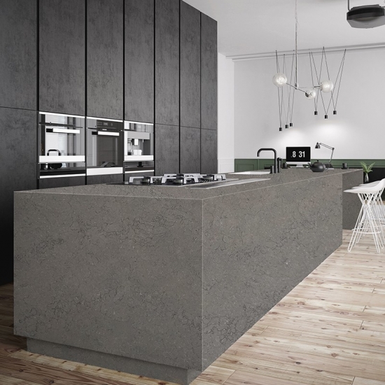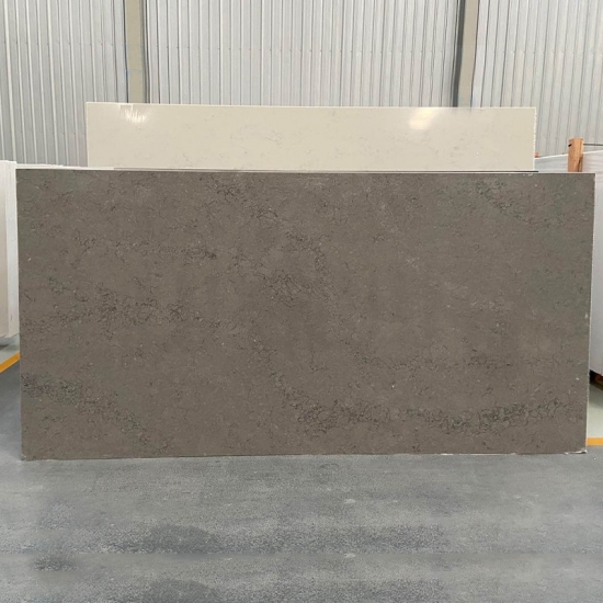 混凝土石英石是一种经过特殊处理的人造石英石材料。它类似于哑光饰面,与传统的抛光饰面相比,混凝土饰面会略微改变石英石的颜色。这种饰面在花岗岩领域也被称为“拉丝”。