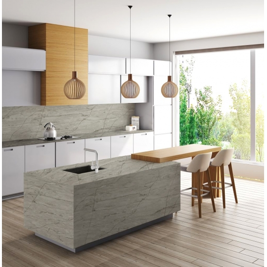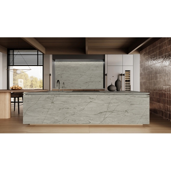 4052 Ariston Grey 拥有简约而优雅的灰色调,呈现出低调而现代的美感。这款石英石具有极强的耐刮擦、耐污渍和耐热性,是厨房台面和浴室台面等高频使用区域的理想之选。由于其致密的结构,Ariston Grey 石英石具有极佳的防水性和易清洁性,能够持久保持美观。