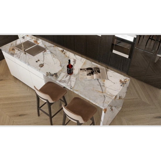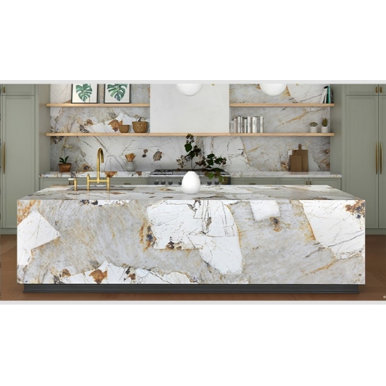 体验 Pandora 3D 打印石英石板材带来的设计自由。通过 3D 打印技术实现深邃均匀的纹理,消除切割和边缘处的视觉瑕疵。这使得天然大理石的美感能够流畅地延伸至整个表面,从而在住宅和商业项目中实现更具创意和商业价值的应用。
