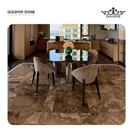 阿尔巴尼亚迷彩棕色大理石 它以浅棕色为底色,饰以枫叶般的纹理,描绘出一幅迷人的秋日景象。它包罗万象、丰富多彩,色调温暖而精致,散发着独特的魅力,唤醒我们对生活的热爱。