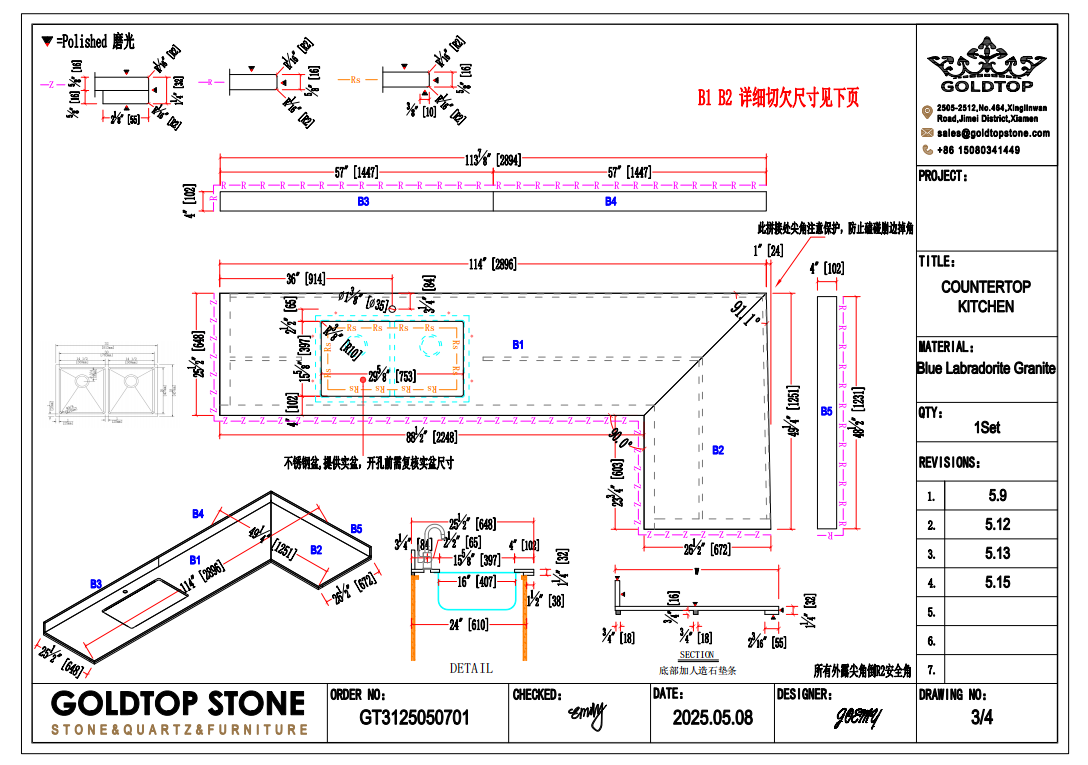 在 金顶石材 我们自豪地为全球 B2B 买家、室内设计师、建筑商和分销商提供顶级蓝色拉长石花岗岩厨房台面,旨在为客户提供美观和持久的性能。