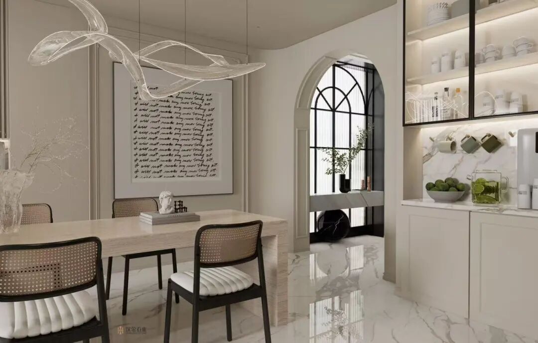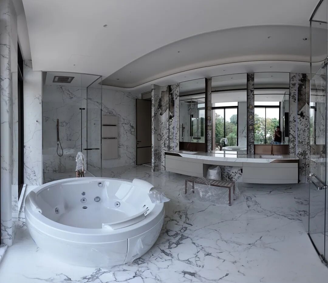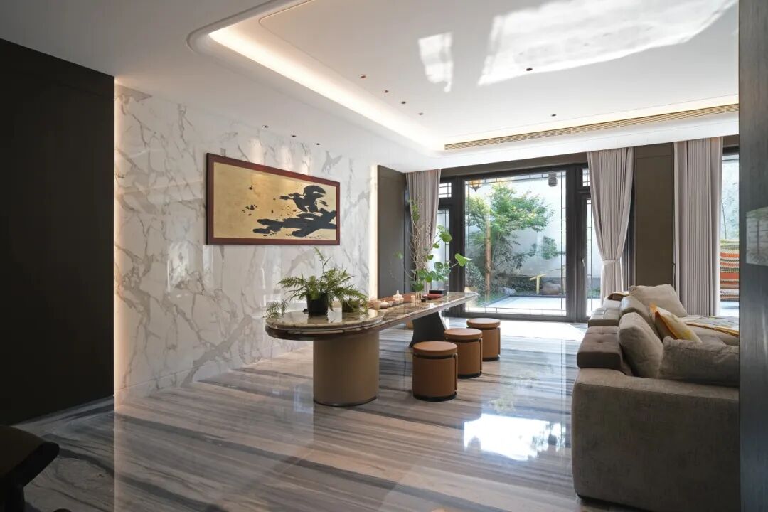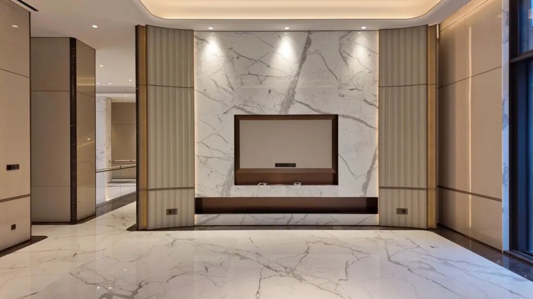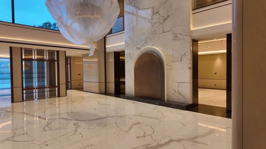 在私人住宅中,卡拉卡塔白石材展现出更为私密的特质。在杭州011号私人住宅中,这种石材营造出宁静的背景,将室内空间与花园景观巧妙连接。其温暖的白色调和细腻的纹理,打造出既奢华又自然的宁静生活环境。