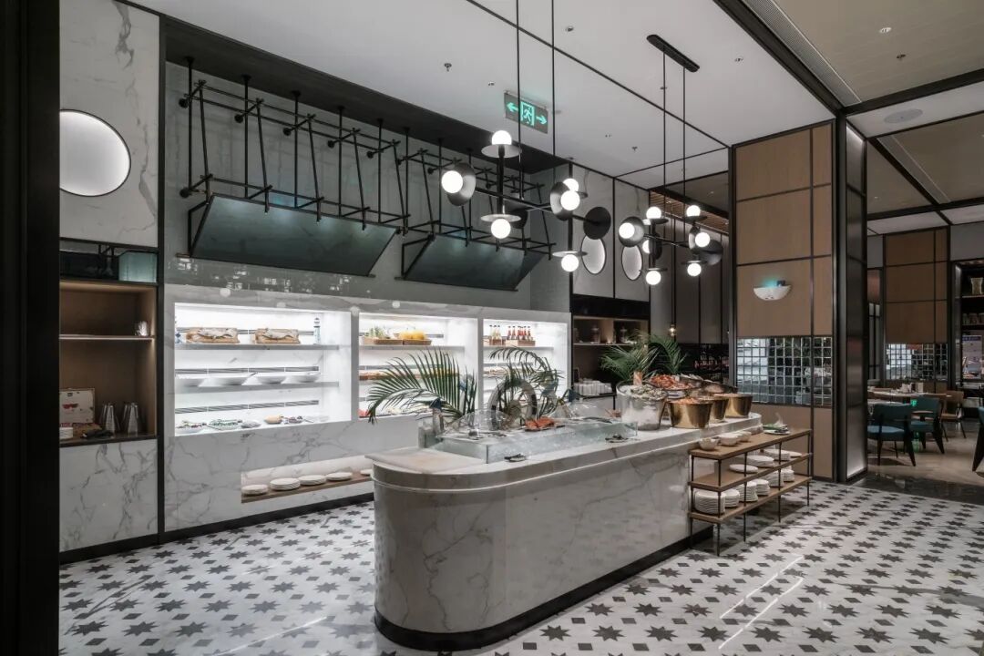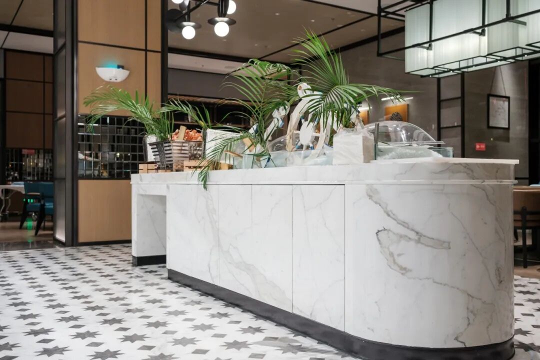 太原喜来登酒店 你可以看到卡拉卡塔白色的台面、地板和墙壁, 该品牌首次进驻该市,便选用卡拉卡塔白大理石来确立其高端定位。这种大理石丝滑的光泽和洁白的表面,在酒店大堂和主要区域营造出既温馨又正式的氛围,充分展现了天然石材如何强化品牌形象,同时赋予空间永恒的优雅。