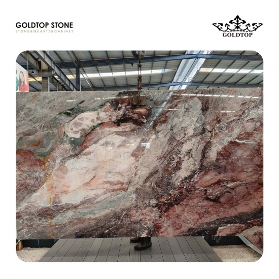 柬埔寨樱花粉色大理石 樱花以其卓越的色彩构成而闻名,它以优雅的笔触,将粉色、红色和蓝色巧妙融合,展现出自然艺术的优美之美。厚度:3/4 英寸(2 厘米)磨光/抛光板材。