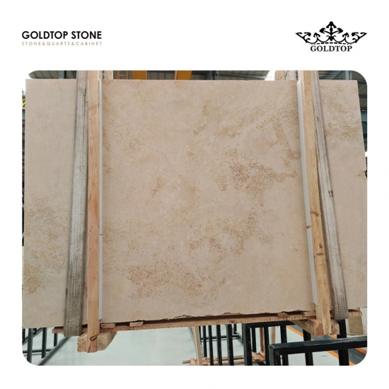 墨西哥罗马横切石灰华 这是一种高品质的天然石灰华,全部产自墨西哥采石场。它拥有温暖的阳光亲吻般的米色底色,层层叠叠的柔和乳白色底调和优雅蜿蜒的纹理,既展现了经典罗马石灰华的永恒魅力,又带有其墨西哥产地独特的地理特征。