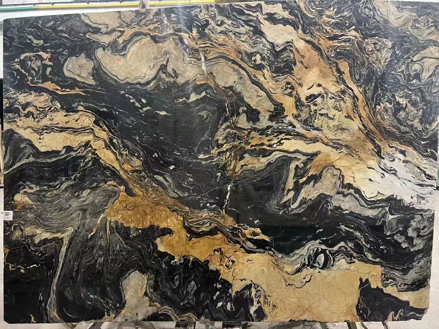 金火大理石 这是一种令人叹为观止的天然石材,捕捉了熔金流淌的迷人之美。这种大理石采自精选矿床,拥有闪耀的白色或乳白色基底,点缀着鲜艳的金色、琥珀色和焦糖色纹理。每一块大理石板都是大自然的杰作,使其成为全球最受追捧的奢华室内装饰材料之一。