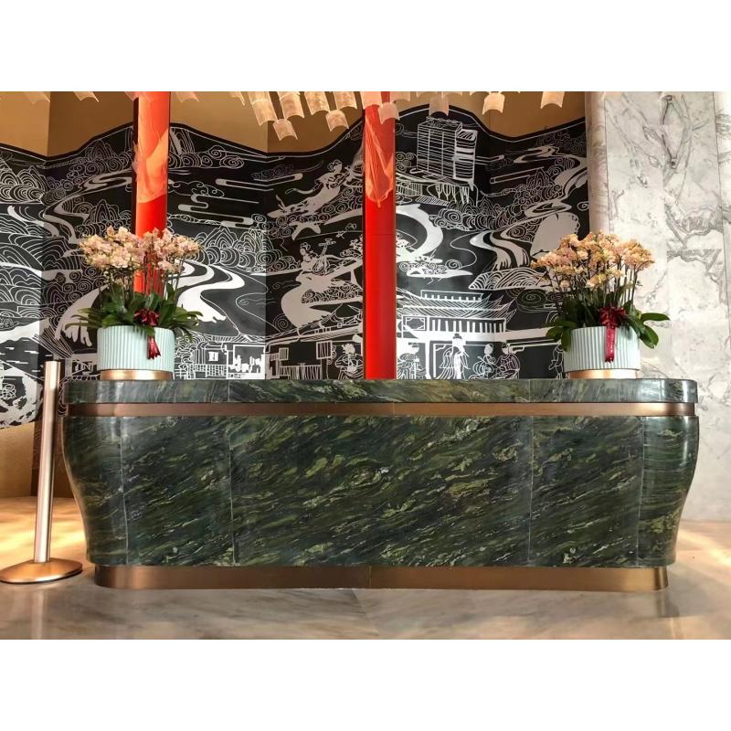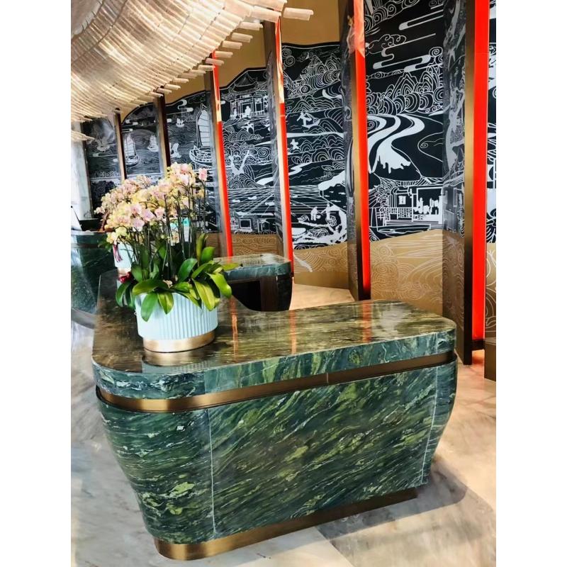 绿丝石英岩台面 以其独特的绿色纹理和丝滑光泽而闻名,为厨房和浴室增添自然优雅的气息。石英岩是一种非常耐用的材料,耐刮擦、耐高温,并且易于清洁和维护。无论是现代还是经典的室内设计,石英岩都堪称完美之选,兼具美观与实用,为任何空间增添一抹精致。