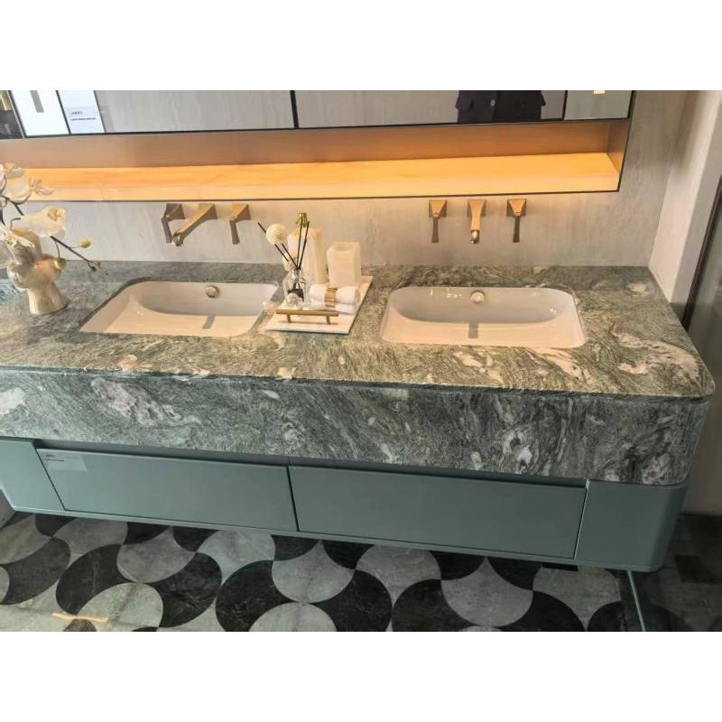 这 景观绿大理石台面 以浓郁的深绿色为基底,令人联想起茂密的森林和自然景观,搭配白色、米色或灰色等浅色调的复杂纹理,令人联想起流水或山脉轮廓。每块抛光板材都拥有独特的高光泽饰面,凸显石材的自然美感和深度。这些台面是现代和传统室内设计的理想之选,是引人注目的视觉焦点——可与光滑的金属材质无缝搭配,打造现代风格,或与温暖的木材搭配,营造经典优雅的氛围——而大尺寸板材则增强了戏剧性的景观般的视觉效果。