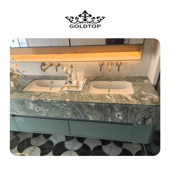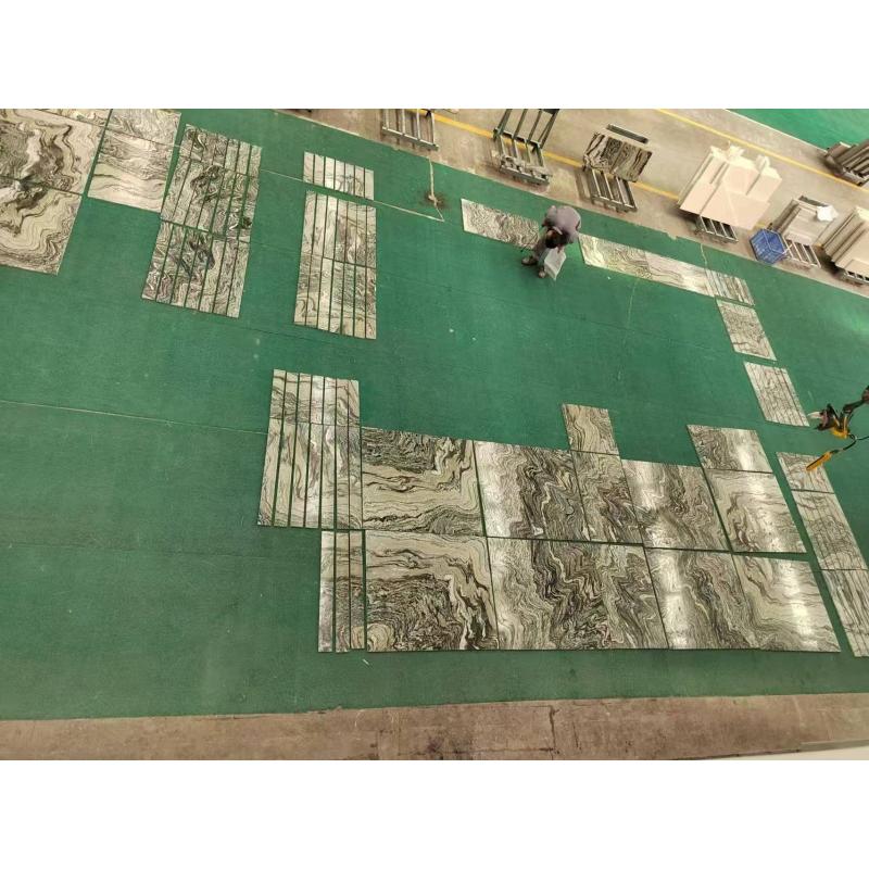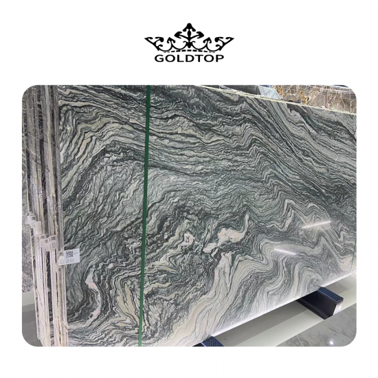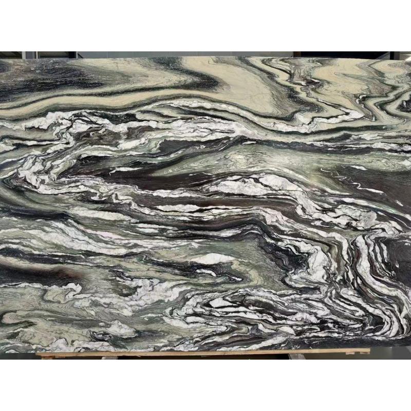 景观绿大理石板材和瓷砖 展现浓郁深邃的绿色底色,令人联想起葱郁的森林和自然的山峦景观之美。从橄榄绿到翠绿色,色调的微妙变化营造出深度和个性,而白色、米色或灰色等浅色调的复杂纹理则构成了动态图案,令人联想到流水、薄雾或山脉轮廓。每一块板材都是一件独一无二的自然艺术品,经过高光抛光,不仅提升了光泽,更凸显了鲜活的绿色背景与精致纹理之间的鲜明对比。