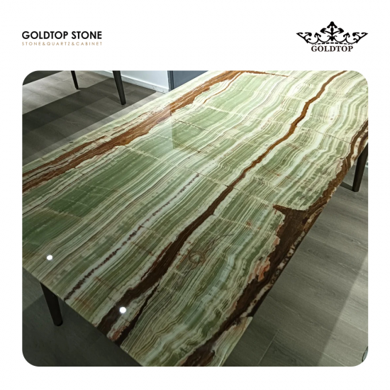 Polished,Honed,Flamed,Leather埃斯梅拉尔多·奥尼克斯 这是一款产自巴基斯坦的优质半透明绿色缟玛瑙,拥有柔和的绿色底色和独特的竹节状纹理。其细腻的质地、光滑的表面和优异的透光性,使其在背光照射下呈现出引人注目的视觉效果,是高端室内设计的理想之选。绿色缟玛瑙广泛应用于豪华别墅、特色墙、台面和装饰面板,能够提升古典和现代空间的格调。其独特的色彩和天然的半透明质感,使其成为追求优雅、自然、兼具强烈视觉冲击力和文化内涵的石材解决方案的设计师的首选。