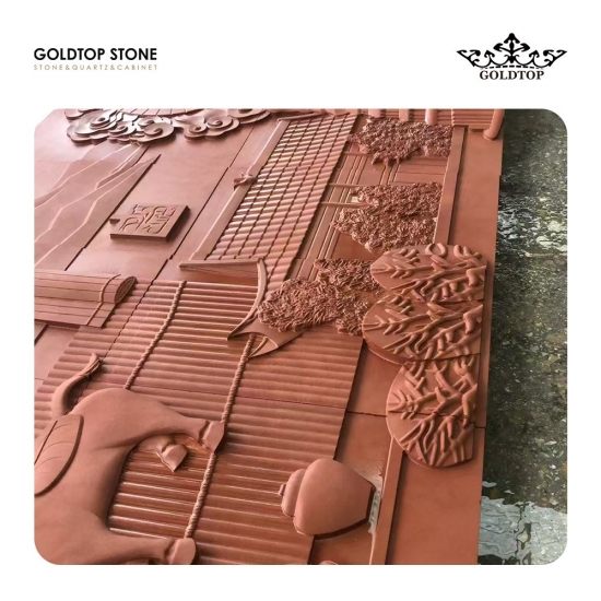 四川 红砂岩 是一种产自中国四川优质矿区的天然沉积砂岩板材。其核心成分包括石英(65%以上)、黏土和针铁矿(主要着色成分)。由于其鲜艳的红色和稳定的性质,常用于建筑装饰和艺术雕刻。其颜色和纹理如下:底色:暖红色系,如亮红色、粉红色和锈红色;纹理:细粒,具有天然的景观纹理、木纹或层状纹理,部分含有浅色矿物斑点;每一块板材的纹理都独一无二。